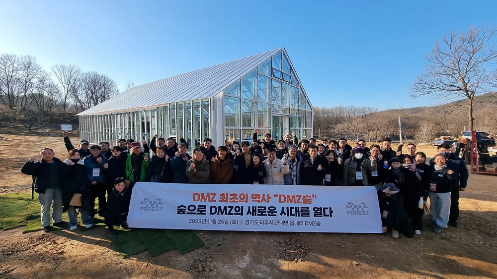 In November 2023, CEO Miryeo Lim joined invited guests at the completion ceremony for the DMZFOREST glass greenhouse. Marking the completion of the first glass greenhouse facility within the DMZ Civilian Control Zone (CCZ), the event brought together around 70 attendees, including officials from the Korea Forest Service and Paju City, to share DMZFOREST’s vision.